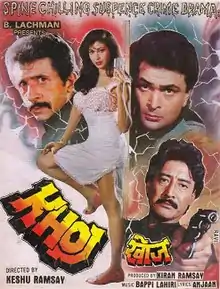 Khoj is a 1989 Bollywood mystery thriller directed by Keshu Ramsay, starring Rishi Kapoor, Naseeruddin Shah, Kimi Katkar in lead roles.[1] This movie was released on 21 July 1989[2] and is based on the British movie Chase a Crooked Shadow (1957), which was an inspiration for the Bengali thriller Sesh Anka and One of My Wives Is Missing (TV Movie 1976). The film was remade in Telugu as Police Report and in Kannada as Agni Sakshi.