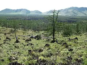 Khorgo-Terkhiin Tsagaan Nuur National Park (Mongolian: Тэрхийн Цагаан нуур) covers the picturesque Terkhiin Tsagaan Lake and the nearby Khorgo Mountain (a recently extinct volcano) in the north central khangai Mountains of Mongolia. The marshes along the west end of the lake are an important breeding and staging area for birds. The park is located in Tariat District of Arkhangai Province.[1]