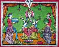 Painting showing Goddess Lakshmi and a pair of Khyahs (foreground).