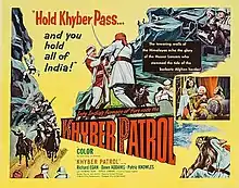 Khyber Patrol is a 1954 American adventure film directed by Seymour Friedman and starring Richard Egan, Dawn Addams and Raymond Burr. The plot focuses on British troops on the Afghanistan border.[1][2] It was distributed by United Artists as a second feature. The film is similar in theme to King of the Khyber Rifles starring Tyrone Power and Bengal Brigade starring Rock Hudson.[3]