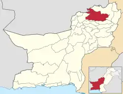 Kila Saifullah District, Qilla Saifullah, or Saifullah Killa (Urdu and Balochi: قلعہ سیف اللہ, Pashto: قلعه سیف الله) is a district in northwestern Balochistan province, Pakistan. It was established as a district in 1988 comprising two former administrative units of Zhob District: the Upper Zhob sub-division and the sub-tehsil of Badinai, previously named Kashatoo and part of the subdistrict of Kakar Khurasan.[2]