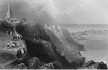 Crowned by a monument, Killiney Hill is 153 metres high and has views over the surrounding areas: Dublin to the northwest; the Irish Sea and the mountains of Wales (on a clear day) to the east and southeast; and Bray Head and the Wicklow Mountains to the south. The hill was higher in the past but material was removed from the summit for the construction of the pier at Dún Laoghaire.[1] The obelisk was completed in 1742 and commemorates the victims of the Irish Famine of 1740-41.