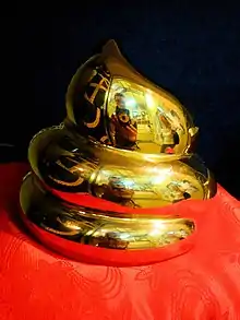 Kin no unko (金のうんこ) or "golden poo" is a Japanese cultural phenomenon. It is a symbol of good luck, as the name is a pun meaning "golden poo" and "good luck" in Japanese.[1] By 2006, 2.7 million mobile phone charms in this form had been sold.[2][3] The symbol, or something similar to it called unchi, appears as an emoji available on many mobile devices that support a Unicode expansion made in the summer of 2014.[4] The charm is unusual outside of Japan but has been available from the English-language website ThinkGeek.[5]