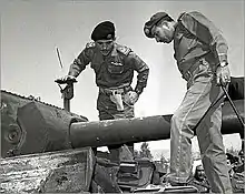 King Hussein (left) inspecting an Israeli tank with Lieutenant General Mashour Haditha Al-Jazy after the Israeli-Jordanian battle of Karameh in 1968