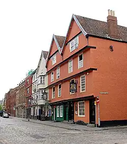 The King William Ale House is a historic public house situated on King Street in Bristol, England. It dates from 1670 and was originally part of a row of three houses. The three have been designated by English Heritage as a grade II* listed building since 8 January 1959.[1] It includes a mixture of 17th-century and 18th-century features, is terracotta coloured, but currently serves as a public house owned and operated by Samuel Smith Old Brewery.