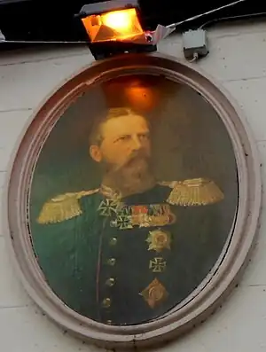 Portrait of Kaiser Friedrich III, the pub sign of the King of Prussia Coaching Inn in Penpergwm in Monmouthshire