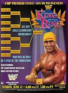 The King of the Ring tournament is a single-elimination tournament that was established by the World Wrestling Federation (WWF, now WWE) in 1985 with the winner being crowned the "King of the Ring." It was held annually until 1991, with the exception of 1990. These early tournaments were held as special non-televised house shows in an effort to boost attendance at these events.[1] In 1993, the WWF began to produce the King of the Ring tournament as a self-titled pay-per-view (PPV). The inaugural PPV, which featured the seventh tournament, took place on June 13, 1993, at the Nutter Center in Fairborn, Ohio. Unlike the previous non-televised events, the PPV did not feature all of the tournament's matches. Instead, several of the qualifying matches preceded the event with the final few matches then taking place at the pay-per-view. There were also other matches that took place at the event as it was a traditional three-hour pay-per-view.[2]
