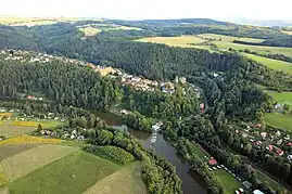Kingdom Come: Deliverance takes place in the early 15th century in the Kingdom of Bohemia, then part of the Lands of the Bohemian Crown and of the Holy Roman Empire, in what is now the Czech Republic. The accessible area of the game is located in the region between Sázava (Sasau) and Rattay.[1] Other real-world settlements and towns in the game include Ledečko, Mrchojedy, Přibyslavice, Samopše, Sázava Monastery, Stříbrná Skalice, Talmberk, Úžice, and Vraník.[6][7]