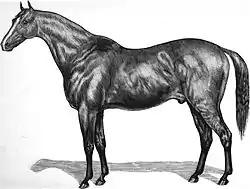 Retired to stud duty, he sired 7 stakes winners: Belinda out of Bellona, Lady Rosebery out of Lady Blessington, Duchess also out of Lady Blessington, King Crab out of Carita, King Cadmus also out of Carita, Oriole out of My Maryland, and Prince Royal out of imported Princess.[8] Belinda, an 1885 chesnut mare, won the 1887 Colleen Stakes.[9] Lady Rosebery, an 1878 chestnut mare, won the 1880 Champagne Stakes. Duchess, an 1881 bay mare, won the 1883 Sapling Stakes, the 1884 Ladies' Handicap, Monmouth Oaks, and Mermaid Stakes.[10] King Crab, an 1885 bay stallion, won the 1888 Oceanview Handicap. King Cadmus, an 1889 bay stallion, won the 1891 Sapphire Stakes.[11] Oriole, an 1874 chestnut mare, won the 1878 Maturity Stakes.[12] Prince Royal, an 1885 chestnut stallion, won the 1888 Jerome Handicap, Stevens Stakes and Stockton Stakes.[13]