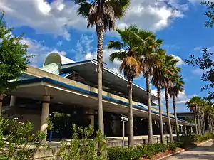 The Kings Avenue station was developed as part of the Jacksonville Skyway's Southbank segment, which carried the Skyway over the St. Johns River via the Acosta Bridge. This station and the adjacent Riverplace station opened on November 1, 2000, completing the Southbank segment as well as Phase I of the Skyway's development. It is connected to the Kings Avenue Garage, a park-and-ride garage, via walkway passing beneath Interstate 95. Some Jacksonville Transportation Authority bus lines run through the station.[1]