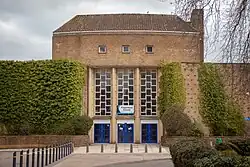 The original block at Kingsmead was modelled in a late Art Deco style, hence its similarities in appearance to a mid-century-modern cinema. The main part of the school (including the hall, gymnasium, canteen, science labs, library, cloakrooms and classrooms) was built during the early 1950s, when a rise in the number of children in post-war Britain (also known as the "baby boom" era) lead to a demand for more schools across the country. The main block was extended at either ends during the 1970s, and during this period a second block (now the Language College) was constructed. A sports hall was built to the rear of the school next to the staff car park during the early 1990s, along with several new offices for senior management near the drama studio. The second most recent significant development is the "south block", a million pound construction with 7 new classrooms and an ICT room; opened September 2006.[4] The infrastructure of the school was never designed for nearly 800 pupils, so the school relies on the field to the back of the school during the summer months for pupils at break and lunchtime.