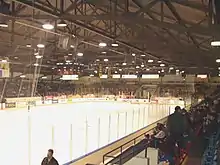 The Kingston Memorial Centre is a 3,300-seat multi-purpose arena located at 303 York Street in Kingston, Ontario, Canada. Opened in 1951, the Kingston Community Memorial Health and Recreation Centre was designed as a community sports and entertainment centre that would become a "living memorial" in remembrance of Kingstonians who gave their life in both world wars and the Korean War (Planning Partnership-Hughes Downey Architects 2007, p. 5). The Memorial Centre lands and facilities include a war memorial, a large ice pad in the arena building, a new outdoor aquatic centre, agricultural barns, softball diamonds, a cinder track, off leash dog park and a linear park at the east, north and west perimeter of the property.[1] Just east of the arena building was the International Hockey Hall of Fame (IHHOF) museum building at 277 York St. In July 2012, Kingston City Council approved the relocation of the collection on a short-term basis to the Invista Centre on Gardiners Road in Kingston. The existing building was found to have costly repair issues related to moisture penetration. It was demolished after the IHHOF moved to the Invista Centre in Kingston's west end.[2]
