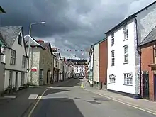 In the 1870s, an assessment was thus: "The trade of the town is chiefly with the agriculturists of the adjoining county of Radnor. There are two banking establishments, viz., the head offices of the Kington and Radnorshire bank (Messrs. Davies, Banks, & Davies), established in 1808, and a branch of the Midland Banking Company, Limited. There is an extensive iron foundry, nail, and agricultural implement manufactory carried on by Messrs. James. Meredith & Co., and the building and tanning trades are well represented. There are also some extensive corn mills and malt-houses. About four miles west of the town are the Old Radnor lime rocks, which are celebrated for their superior quality for building and for agricultural purposes. The market day is Tuesday, considerable business being transacted on that day in eggs, butter, poultry, &c., and is the mart to which the Welsh send their produce, to meet dealers who frequent this town from all quarters."[15]