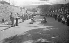 In 1951 a venue was selected on Desjardins Avenue,[lower-alpha 10] again in Montreal's east end neighborhood of Maisonneuve, nearby its Aird Avenue location eleven years earlier.[33] Like Aird it was a quiet thoroughfare ideal for running races, measuring 865 feet in length,[lower-alpha 11] with cars starting on a ramp at the top of the hill and crossing the finish 750 feet below where they were met by bales of hay if they could not stop in time.[34] This was the Classic's last venue, becoming a permanent home for over twenty years.