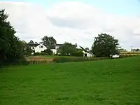 In 1779 a mansion still stood at Kirkwood near the middle of a small enclosure, with an apparently raised area in front, delineated by trees.[14] The mansion house stood until the 1790s.[16] The first 6-inch OS map shows a well laid out garden complex in front of Kirkwood, corresponding to the raised area shown on the 1779 map, with paths that led, following field boundaries, to the old toll road near North Kilbride Farm.[17] In 1799 a 'smiddy park' is shown with three buildings to the west of the house. Gunshill nearby is shown as a single building with a small enclosure in front of it.[14] The field or 'Park' names of Kirkwood and Gunshill are of interest, including Whin, Johnshill, Stone, Byrestead, Gooseward, Ward, Wood, Long Crooks, Hillock Holm and the Chapel-lands across the road.[14]