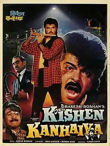 Kishen Kanhaiya is a 1990 Indian Hindi action comedy film directed by Rakesh Roshan, released in 1990. The film stars Anil Kapoor (in a double role), Shilpa Shirodkar and Madhuri Dixit. In this movie, Shilpa Shirodkar had a controversial transparent wet saree scene similar to Mandakini's scene in Ram Teri Ganga Maili and her career suffered because of this role. This film was inspired by the 1968 film Ram Aur Shyam, which had also inspired Seeta Aur Geeta and ChaalBaaz. Before Anil Kapoor, the role was offered to Amitabh Bachchan, but he rejected it for unknown reasons. The film turned out to be a hit at the box office.