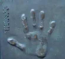 Kitanofuji's handprint displayed on a monument in Ryōgoku, Tokyo