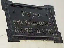 Plaque on the church school in memory of Dinter