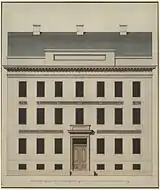 The building was destroyed in the Copenhagen Fire of 1795 but rebuilt 1797–98 by Joseph Guione.[1] It was expanded with an extra floor in 1880.[2]