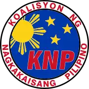 The Koalisyon ng Nagkakaisang Pilipino (KNP) (Coalition of United Filipinos), also known as the United Opposition, was the political multi-party electoral alliance of the dominant opposition in the Philippines during the 2004 general elections. The KNP was composed of the Laban ng Demokratikong Pilipino (Fight of Democratic Filipinos) or LDP, the Partido Demokratiko Pilipino-Lakas ng Bayan or PDP–Laban, and the Pwersa ng Masang Pilipino (PMP) of deposed president Joseph Estrada, a former movie star.[1]