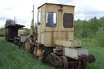 The Kobrinskaya forestry railway's first line was constructed in 1946, in the area of Murashinsky District, Kirov Oblast from the village Bezbozhnik. The total length of the Kobrinskaya narrow-gauge railway at the peak of its development exceeded 150 kilometres (93 mi), of which 80 kilometres (50 mi) is currently operational. The railway operates scheduled freight services from Bezbozhnik, used for forestry tasks such as the transportation of felled logs and forestry workers. In 1992, as a result of privatization "Mayskiy timber industry enterprise", there was founded JSC "Mayskles" company.[2] In 2014, repairs are being made to the track.[3]