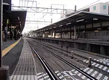 This station consists of one underground island platforms serving two tracks, with the station building located above.[2] The underground tracks opened on August 19, 2012, replacing the ground-level tracks.[3]