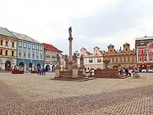 The historical centre of the town has many gothic and baroque buildings. Most notable are the main market (Karlovo Square) with the Neo-Renaissance town hall, and the Church of Saint Bartholomew from the 13th century, rebuilt in 1360 by the architect Peter Parler.[5][11]