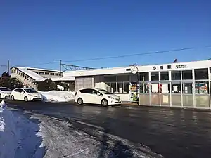 Kominato Station (小湊駅, Kominato-eki) is a railway station of the Aoimori Railway Line located in the central district of the town of Hiranai in Aomori Prefecture, Japan. The station has been operating since 1891, though the most recent station building, which consists of a side platform and an island platform connected to the station building by a footbridge, was completed in 1986. Since 2010, the station has been operated by the Aoimori Railway Company, a third sector, regional rail operator. It is the busiest railway station in Hiranai.