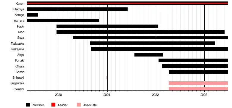 At Noah Bumper Crop 2022 In Sendai on January 16, Haoh turned on the stable, and Kenoh and Manabu Soya unsuccessfully challenged M's Alliance (Keiji Muto and Naomichi Marufuji) for the GHC Tag Team Championship.[5] At Noah Gain Control 2022 In Nagoya on February 23, Aleja, Hajime Ohara and Tadasuke defeated Hao, Junta Miyawaki and Kai Fujimura. Aleja began showing compassion towards real life brother Kai Fujimura, after stopping Tadasuke's attack on him.[6] Two days later at "Noah Step Forwrard", after growing unsatisfied with Tadasuke's actions, Aleja decided to turn on Tadasuke, and left Kongo, defecting to "Noah Juniors", before reverting to his previous ring name "Alejandro".[7] At Noah Great Voyage in Fukuoka 2022 on March 21, (Katsuhiko Nakajima, Kenoh, Manabu Soya and Masakatsu Funaki teamed up in a losing effort against Sugiura-gun (Hideki Suzuki, Kazushi Sakuraba, Kendo Kashin and Takashi Sugiura).[8] On the first night of the Noah Majestic 2022 event from April 29, Hajime Ohara, Tadasuke and Shuji Kondo fell short to Los Perros del Mal de Japón (El Texano Jr., Nosawa Rongai and Super Crazy) and Nio fell short to Hao.[9] On the second night from April 30, Hajime Ohara, Manabu Soya and Tadasuke defeated Funky Express (Akitoshi Saito, King Tany and Mohammed Yone), Masakatsu Funaki successfully retained the GHC National Championship against Simon Gotch, and Katsuhiko Nakajima and Kenoh unsuccessfully challenged Sugiura-gun (Hideki Suzuki and Takashi Sugiura) for the GHC Tag Team Championship.[10] At Noah Dream On Final 2022 on May 21, Hajime Ohara, Hi69, Tadasuke and Shuji Kondo defeated Momo No Seishun Tag (Atsushi Kotoge and Daisuke Harada), Hao and Yo-Hey, Katsuhiko Nakajima, Manabu Soya and Masakatsu Funaki fell short to Sugiura-gun (Hideki Suzuki and Takashi Sugiura) and Masaaki Mochizuki, and Kenoh defeated Simon Gotch.[11] At CyberFight Festival 2022 on June 12, Katsuhiko Nakajima teamed up with Atsushi Kotoge and Yoshiki Inamura to defeat Burning (Tetsuya Endo and Jun Akiyama) and Kazusada Higuchi, and Kenoh defeated Daisuke Sasaki.[12] At Noah Destination 2022 on July 16, Katsuhiko Nakajima, Manabu Soya and Masakatsu Funaki fell short to Go Shiozaki, Kazuyuki Fujita and Takashi Sugiura, and Kenoh defeated Satoshi Kojima to win the GHC Heavyweight Championship.[13] At Noah Departure 2022 on August 5, Katsuhiko Nakajima and Manabu Soya defeated Anthony Greene and Stallion Rogers, and Hajime Ohara, Hi69, Kenoh and Tadasuke fell short to Alejandro, El Hijo del Santo, Kaito Kiyomiya and Último Dragón.[14] At Noah Grand Ship In Nagoya 2022 on September 25, Hajime Ohara, Hi69 and Tadasuke fell short to Alejandro, Extreme Tiger and Ninja Mack, Katsuhiko Nakajima and Masakatsu Funaki fell short to Kazuyuki Fujita and Keiji Muto, and Kenoh dropped the GHC Heavyweight Championship to Kaito Kiyomiya.[15] At Noah Ariake Triumph 2022 on October 30, Hajime Ohara, Manabu Soya and Shuji Kondo defeated Alejandro, Extreme Tiger and Shuhei Taniguchi, Hi69 and Tadasuke unsuccessfully challenged Stinger (Atsushi Kotoge and Seiki Yoshioka) for the GHC Junior Heavyweight Tag Team Championship, Masakatsu Funaki defended the GHC National Championship against Kazushi Sakuraba, Katsuhiko Nakajima and Kenoh unsuccessfully challenged TakaKoji (Satoshi Kojima and Takashi Sugiura) for the GHC Tag Team Championship.[16] At Noah Global Honored Crown 2022 on November 10, Hajime Ohara and Shuji Kondo defeated Atsushi Kotoge and Seiki Yoshioka to win the GHC Junior Heavyweight Tag Team Championship and Masakatsu Funaki dropped the GHC National Championship to El Hijo del Dr. Wagner Jr.[17] At Noah The Best 2022 on November 23, Hi69 and Tadasuke fell short to Funky Express (Akitoshi Saito and Mohammed Yone), Katsuhiko Nakajima, Kenoh and Manabu Soya fell short to Kaito Kiyomiya, Masa Kitamiya and Satoshi Kojima, and Hajime Ohara and Shuji Kondo dropped the GHC Junior Heavyweight Tag Team Championship to Atsushi Kotoge and Seiki Yoshioka.[18] At N Innovation 2022 on December 23, Hi69 fell short to Shoki Kitamura, and Hajime Ohara, Shuji Kondo and Tadasuke fell short to Alejandro, Andy Wu and Ninja Mack.[19]