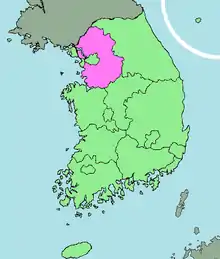 Hwanghae province has been divided into South Hwanghae province and North Hwanghae province since 1954. Thanks to the wide Yonbaek and Chaenyong plains, Hwanghae province is a granary of North Korea and is known for its good quality cereal production.[33] As the millet seeds produced in the region are thick, and have a good taste, they are eaten as much as barley is consumed by people of the southern region. The abundant production of cereal crops provides quality feed for livestock, so the quality of meat produced in the region is said to be good. Chicken raised in every household is fleshy and of good quality, and is used for many dishes in Hwanghae cuisine. It is used as an ingredient for wheat noodle dishes, and mandu (dumplings). The coastal area, adjacent to the Yellow Sea, produces a lot of salt because the tideland in the area is developed and there is little rainfall.[33] Due to the climate, kimchi in the Hwanghae region has a clear and refreshing taste, so its brine is used as a soup on many occasions. Dongchimi brine is used as a broth for naengmyeon (cold buckwheat noodle dish), or for mixing with a bowl of chilled rice to make a midnight snack. The Hwanghae people are known for kindheartedness and rustic simplicity, so their cuisine reflects their nature. Hwanghae dishes are savory and simple, with less decoration such as mandu made in a larger size than other regions. The general taste is moderate, similar to that of Chungcheong province.[3]