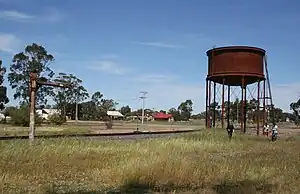 At the southern (Melbourne) end of the station site is a passing loop, while at the northern end is the junction of the two lines. A water tower and standpipe for steam locomotives is also located at the station.