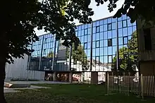 The conservatory was established in 1870 as a music school. In 1924 it branched out into Dutch and French recitation and theatre.[1] The current pillared geometric glass building was designed by architects A.G. and P.A. Pauwels and was built in the early 1970s on the site of a demolished prison. Radio 2 West Flanders also joined the building.[2] In the new building, the conservatory began dance courses in the 1970s.[1]