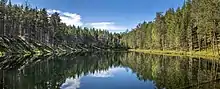 Kostomuksha Nature Reserve (Russian: Костомукшский заповедник) (also Kostomukshsky) is a Russian 'zapovednik' (strict ecological reserve) of forests, lakes, rivers and wetlands on the border of Russian and Finland. It was created in 1983, along with other protected areas, in part to mitigate the impact of the Karelskiy Okatysh mine outside of the town of Kostomuksha, one of the largest iron ore reserves in Russia, and also to protect the forest from increase commercial logging in the area. A further scientific purpose is the protection of forest reindeer and a type of landlocked salmon. The reserve is part of a transboundary reserve complex with reserves in Finland to the west (collectively called "Friendship"), and is situated in the Kalevalsky District and Muyezersky District of the Republic of Karelia, about 500 km north of St. Petersburg and 500 km west of Arkhangelsk. The reserve was created in 1993, and covers an area of 47,569 ha (183.66 sq mi).[1][2]