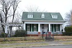The Kraemer-Harman House is a historic house at 513 2nd Street in Hot Springs, Arkansas. It is a 1+12-story wood-frame structure, originally built in 1884 with vernacular styling, and embellished in the 20th century with Craftsman and Classical Revival elements. It has a hip-roof porch extending across its front, supported by square columns mounted on short brick piers. The interior features particularly elaborate Craftsman style, with carved plaster ceilings, and a buffet with ornate woodwork and leaded glass doors.[2]