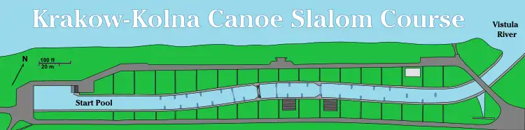 The Kraków-Kolna Canoe Slalom Course is an artificial whitewater course in Poland, on the south bank of the Vistula River, in the suburb of Kolna, 10 kilometres (6 mi) west of Kraków. It is fed with river water diverted around a nearby dam. The top 120 metres (394 ft) of the course is a flatwater start pool that is covered in winter by a long white tent. Air inside the tent is heated, but the water is cold.