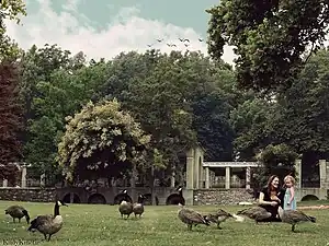 Krug Park, located at the northern end of the Parkway St. Joseph in Saint Joseph, Missouri, is a large city park with Italian Renaissance structures, extensive landscaping and flowerbeds. The park's 163 acres (0.66 km2) house an amphitheater, a lagoon, rose gardens, picnic areas, an Italian castle, scenic walking trails, and various playgrounds.[1] Krug Park "lights up" during the holiday season as Holiday Park.