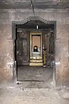 The temple is located in Kunnandarkoil, a rockyhill in Pudukottai district in southern Tamil Nadu. The cave houses three life size sculptures of various forms of Shiva.[6] The main shrine faces East and the sanctum houses the image of Lingam, an iconic representation of Shiva. Shiva is worshipped as Parvathagiriswarar. The walls of the sanctum are plain, unlike later Chola temples that have niches to house different images. The sanctum is approached through an Arthamandapa, a hall supported by pillars. The sanctum is guarded by Dvarapalas on either sides. The inscriptions are made on the base of the Dvarapalas. There are two portrait images, one of which is identified as the Mutharaiyar chief who built the temple and other being his assistant.[3]
