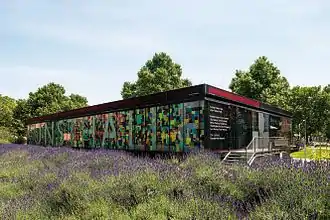 In May 2001, Kunsthalle Wien moved into its new headquarters, designed by the architect duo Ortner & Ortner, at the Museumsquartier. For this headquarters the Winterreithalle (winter riding arena) of the Hofstallungen (imperial mews) was extended by a functional annex which combines the historic building with contemporary architecture. Two halls with different interior profiles provide space for exhibitions of contemporary art. The entrance area was remodelled and the building extensively renovated in 2013, rendering the original spatial concept visible again. In 2001, the yellow container at Karlsplatz was replaced by a glass pavilion.