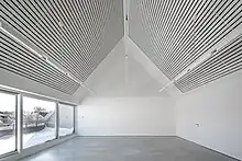 The Kunsthaus project was initiated by the publisher Gerhard Steidl.[2][3][4] and was realized with local and federal government support.[5][6] The building had its topping out ceremony at the end of September 2019,[2][7] and was completed in December 2020. The originally estimated total cost was €5,874,000, of which three-quarters was financed by federal funds from the "National Projects of Urban Development" funding program,[1][8][9] The final cost was put at "6.5 to 7 million euros" by Göttingen's mayor.[10]