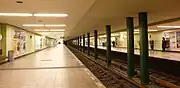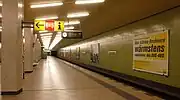 Kurfürstendamm is an underground station on lines U1 and U9 of the Berlin U-Bahn. It opened on 28 August 1961, when the first section of the U9 between Spichernstraße and Leopoldplatz was inaugurated. As there had originally been no stop on the U1 where it now crossed the U9, the line received an additional station here.