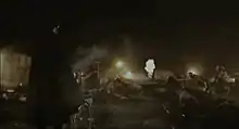 The band performing the song amongst the pile of bodies, while Noda stands with the girl in a wheelchair in the music video.