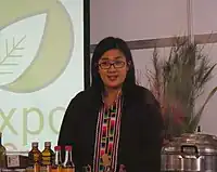 Kylie Kwong giving a public cooking demonstration, Organic Expo, July 2009