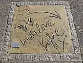 An elaborate art book titled Kylie, featuring contributions by Minogue and creative director William Baker, was published by Booth-Clibborn in March 2000.[108][109] At the time, she began a romantic relationship with model James Gooding.[110] Their relationship ended after two and a half years.[111] In October, she performed at both the closing ceremonies of the 2000 Summer Olympics and in the opening ceremony of the Paralympics, all held in Sydney.[112][113] Her performance of ABBA's "Dancing Queen" was chosen as one of the most memorable Olympic closing ceremony moments by Kate Samuelson of TNT.[114] In March 2001, she embarked on the On a Night Like This Tour, which was inspired by the style of Broadway shows and the musicals of the 1930s.[115][116] She also made a brief cameo as The Green Fairy in Baz Luhrmann's film, Moulin Rouge!.[117] It earned her an MTV Movie Award nomination in 2002.[118] "Spinning Around" and Light Years consecutively won the ARIA Award for Best Pop Release in 2000 and 2001.[119][120] In early 2001, she launched her own brand of underwear called Love Kylie in partnership with the Holeproof brand of Australian Pacific Brands.[121]