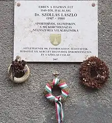 László Szollás commemorative plaque in Budapest District XII, Győri Street No 2/c