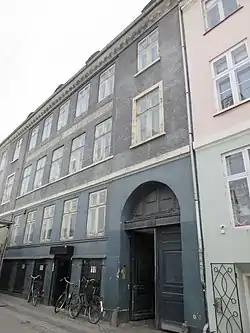Herman Richter, a merchant, resided in the building with his wife Betty Dorothea Bernhardt, their two children (aged one and two) and one maid.[8] Wulf Jacob Berns, a merchant (hørkræmmer), resided in the building with his wife Birthe Goldsmith, their three children (aged two to eight) and a 17-year-old son from the wife's first marriage.[9] Jacob Albert Meyer, a merchant, resided and the building with his five children (aged seven to 17) and two maids.[10] Ane Margrethe Ankersen, a 71-year-old widow, resided in the building with her 39-year-old daughter, two maids, the Judita Hamar, Hamar's five children (aged 22 to 28) and one maid.[11] Philip Seydler, a flutist in the Royal Danish Orchestra and instrumentmaker, resided in the building with his wife Augusta Tiemroth, their three children (aged one to three) a male servant and a maid.[12] Didrich Didrichsen, secretary of the Royal Danish Agricultural Society, resided in the building with his wife Severine Marie Hallesen, their six children (aged eight to 20), a housekeeper (husjomfru) and a maid.[13] Sigvart Colbiørnsen German, a cclerk, resided in the building with his wife Adel Benedicta Schiøtt and a maid.[14] Sigvart Colbiørnsen German, a beer seller, resided in the building with his wife Ide Margrethe Bukholt, their one-year-old son and a maid.[15] Niels Jørgen Smith, the proprietor of a tavern in the basement, resided in the associated dwelling with his wife Mette Marie Ingerslef, their four children (aged four to 14) and one servant.[16]