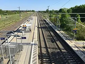 Löwenberg (Mark) (German: Bahnhof Löwenberg (Mark)) is a railway station located in Löwenberger Land, Germany. The station was opened in 1847 is located on the Berlin Northern Railway, Löwenberg-Lindow-Rheinsberger railway and Löwenberg–Prenzlau railway. The train services are operated by Deutsche Bahn and Niederbarnimer Eisenbahn.
