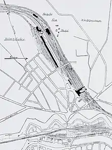 A suitable location was finally found in the Rethteich Meadows, a few hundred metres west of the inner city, near the St. Lawrence Church. The new station, built to a design by Fritz Klingholz, was finally opened in 1908, and the tracks slewed to the new location.