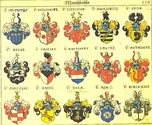Lüttichau arms on the center top in Siebmachers Wappenbuch.