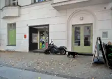 The area near Nollendorfplatz, locally known as "Motzkiez", "Fuggerkiez", or "Nollendorfkiez" ("der Kiez" is a word for neighborhood in the local idiom, Berlinerisch), may be the best known of Berlin's roughly 4 neighborhoods with some explicitly LGBTIQ+ history, a reputation for being LGBT-friendly, and for having a large concentration of LGBTIQ+ locations. A hand drawn map from 1938 (5 years after the begin of Nazi rule) shows no fewer than 57 active or former gay and/or lesbian friendly spots hugging Nollendorfplatz and extending eastward down Bülowstraße.[12] What is striking about the list is the relatively large number of lesbian oriented establishments relative to the more chic neighborhood of Charlottenburg to the west. Charlottenburg comes in, in a solid third, where LGBT friendly locals are concerned, with 52.[12] Mitte tops the list with 99 places of LGBT interest at the time according to the chronicler.[13] The comparison is somewhat skewed to Mitte's advantage however, as the area shown on the map of Mitte is larger. The venues mentioned range in style from the very posh Café Kranzler on Unter-den-Linden, to the somewhat more risque but no less fancy Moka Efti on Friedrichstraße, to the tiny bar and brothel Mulackritze in the Scheunenviertel that is so small (it still exists today in the basement of Charlotte von Mahlsdorf's Gründerzeitmuseum) that the entire bar with séparée fits in the basement of the Museum. The Gründerzeitmuseum is not a large building. Schöneberg is often called the world's oldest gay village, but in light of its history, perhaps "the world's oldest lesbian village" would be more accurate, were it not for the fact that there is only one single lesbian establishment left in the neighborhood, Begine, Potsdamer Straße 139.