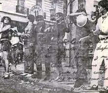 Homosexuality in the time of Juan Manuel de Rosas is attested by the stigmatization of the Unitarians to the Federals with the term "sodomites" and of the Federals to the Unitarians as "maricones" (i.e. "faggots").[30] This attribution of roles was also derived from the custom of the Mazorca members of sodomizing young Unitarians, as documented in Esteban Echeverría's El matadero (1839).[30] The repressed homosexuality became visible during the Buenos Aires Carnival festivities, so much so that in 1836 Rosas prescribed its rules, prohibiting "wearing a costume that does not correspond to one's sex."[30] There are no historical sources about lesbianism of the time, although a relationship between Manuela Rosas and her cousin Dolores Fuentes can be inferred, as documented in some love letters, in one of which the former wrote: "How inhumane are my uncles who have taken a friend from me who is as if she were my wife!"[30][31]